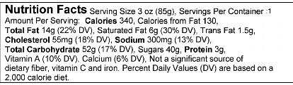 Ingredients: Sugar, Oats, Milk, Margarine (liquid and partially hydrogenated soybean oil, water, salt, soy lecithin, vegetable mono & diglycerides, sodium benzoate (a preservative), citric acid, natural and artificial flavor, beta carotene (color), vitamin A palmitate added, whey), Peanut Butter (Peanuts, dextrose, hydrogenated vegetable oil (rapeseed and/or cottonseed and/or soybean), salt), Vanilla Flavoring. Allergy Warning: Contains: Peanuts, MIlk, and Soybeans