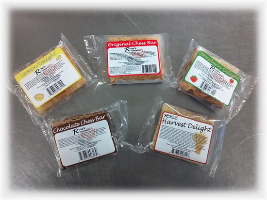 We are currently offering our Original Chess Bars, Chocolate Chess Bars, Strawberry Delights, Lemon Delights, Chocolate Oatmeal Cookies, and Cornflake Cookies for sale on our website. All of our baked goods are individually wrapped and sealed for freshness and are guaranteed to taste great! Not sure which ones to try? Order the Sampler Pack to get a sampling of all our homemade treats!